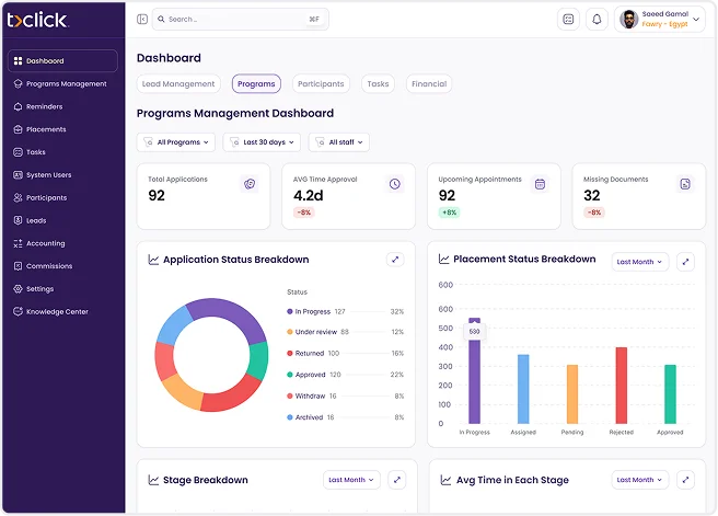 Students don’t want to feel lost. With Ticlick, they see their assigned programs, progress stages, uploaded documents, and real-time reminders—all in one portal.